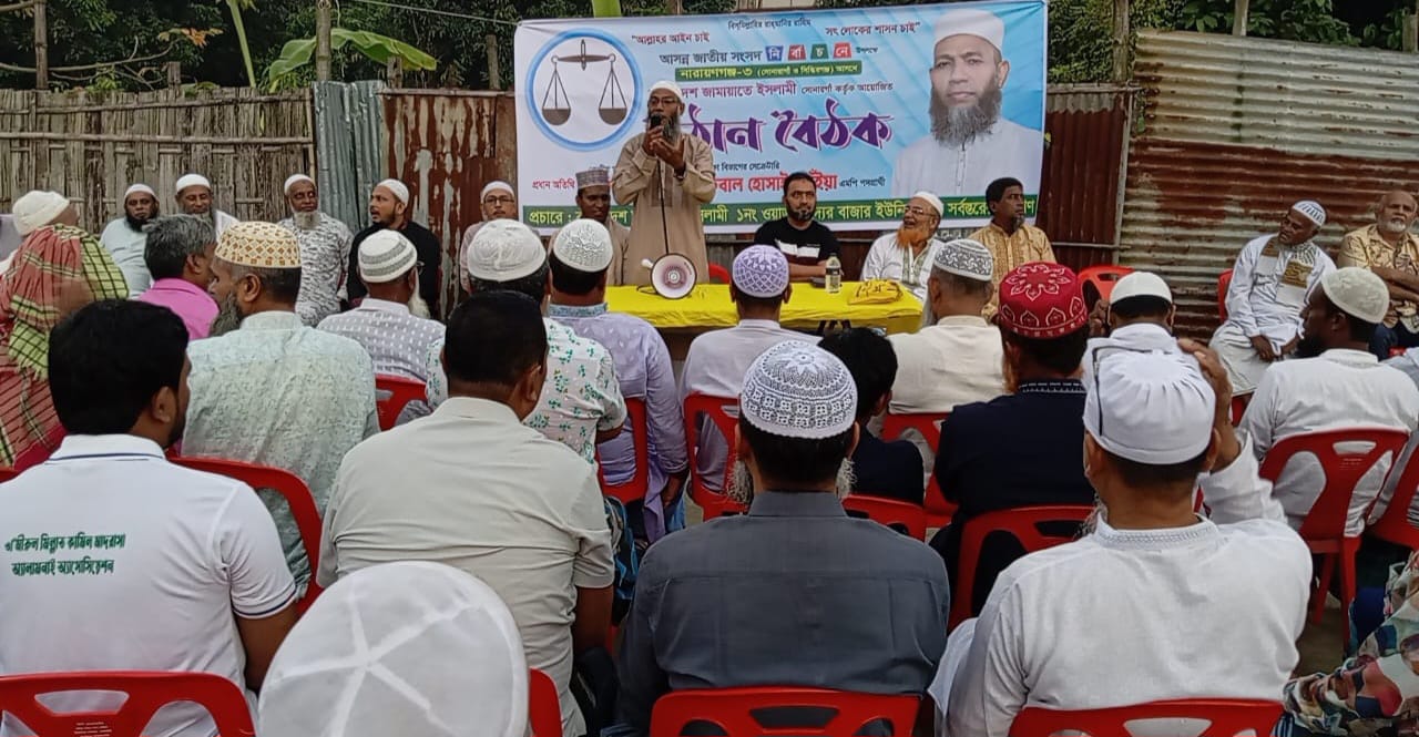 এর আগে সাতভাইয়াপাড়া গ্রামের উঠান বৈঠকে বক্তব্য দেন সোনারগাঁ উপজেলা জামায়াতে ইসলামীর সেক্রেটারি মো. আসাদুজ্জামান মোল্লা, মোশারফ হোসেন মুশু ও মো. রনি মোল্লা।