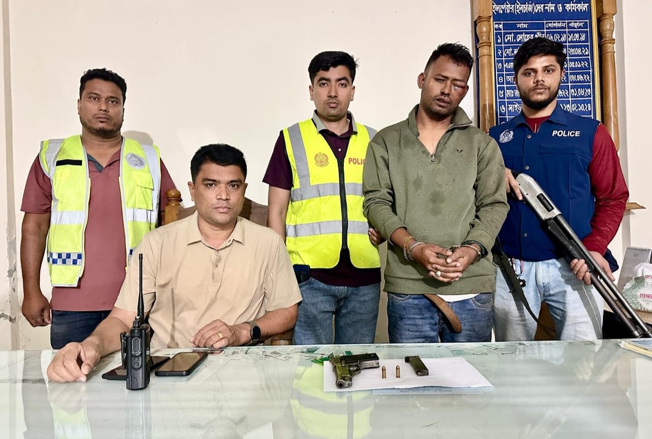 সোনারগাঁয়ে পুলিশের অভিযানে বিদেশি পিস্তল ও গুলিসহ সন্ত্রাসী গ্রেপ্তার