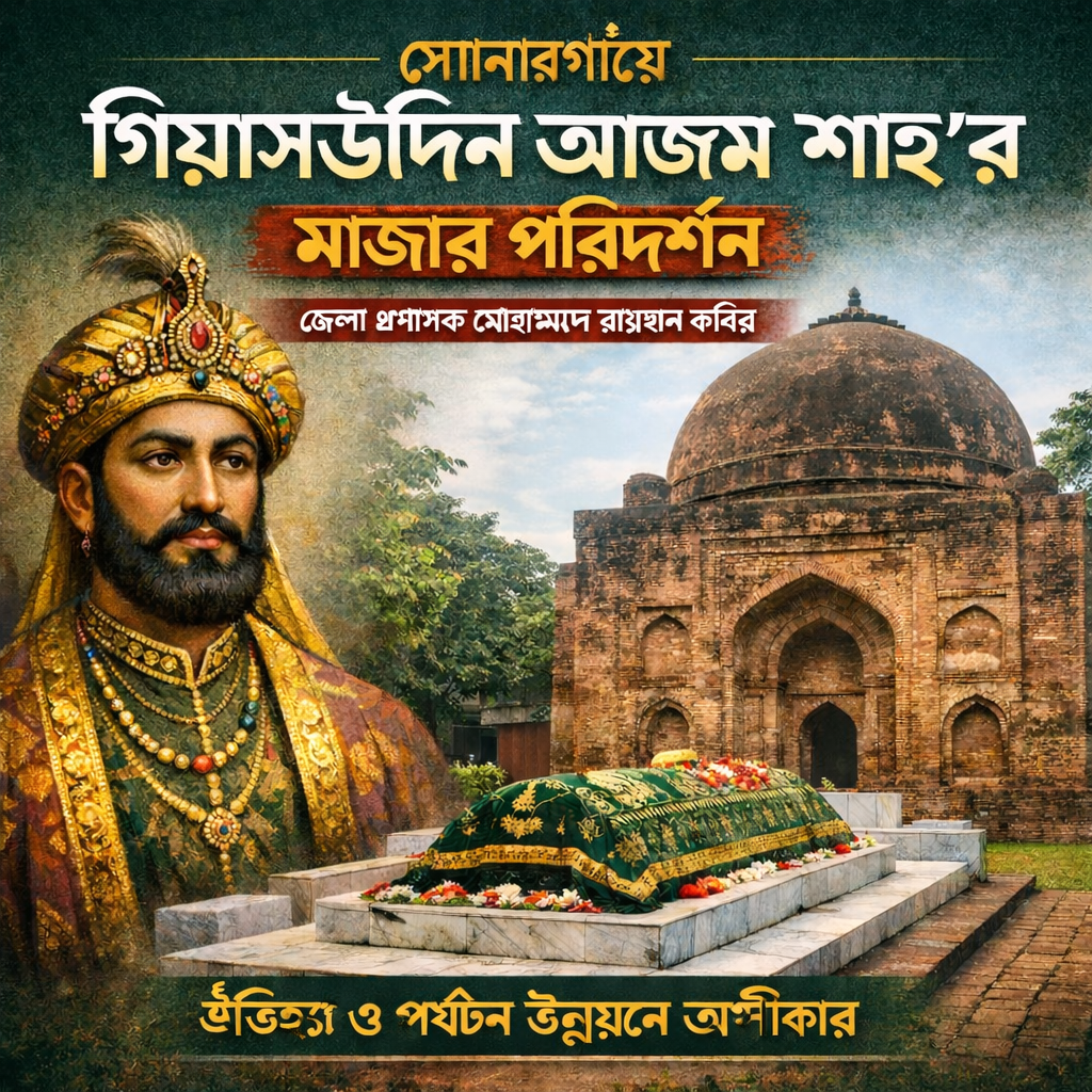 নারায়ণগঞ্জের সোনারগাঁ উপজেলার মোগরাপাড়া শাহচিলাপুর এলাকায় অবস্থিত ঐতিহাসিক সুলতান গিয়াস উদ্দিন আযম শাহ’র মাজার পরিদর্শন করেছেন জেলা প্রশাসক (ডিসি) মোহাম্মদ রায়হান কবির।